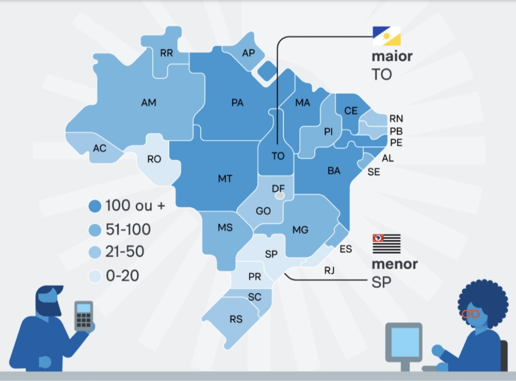 Em todo o Brasil, o número de servidores públicos aumentou nos últimos 30 anos, mas a expansão ocorreu de forma desigual. Enquanto São Paulo praticamente manteve estabilidade no número de funcionários por mil habitantes — de 40,4 para 40,6 —, o Tocantins viu sua estrutura de pessoal se multiplicar mais de seis vezes.